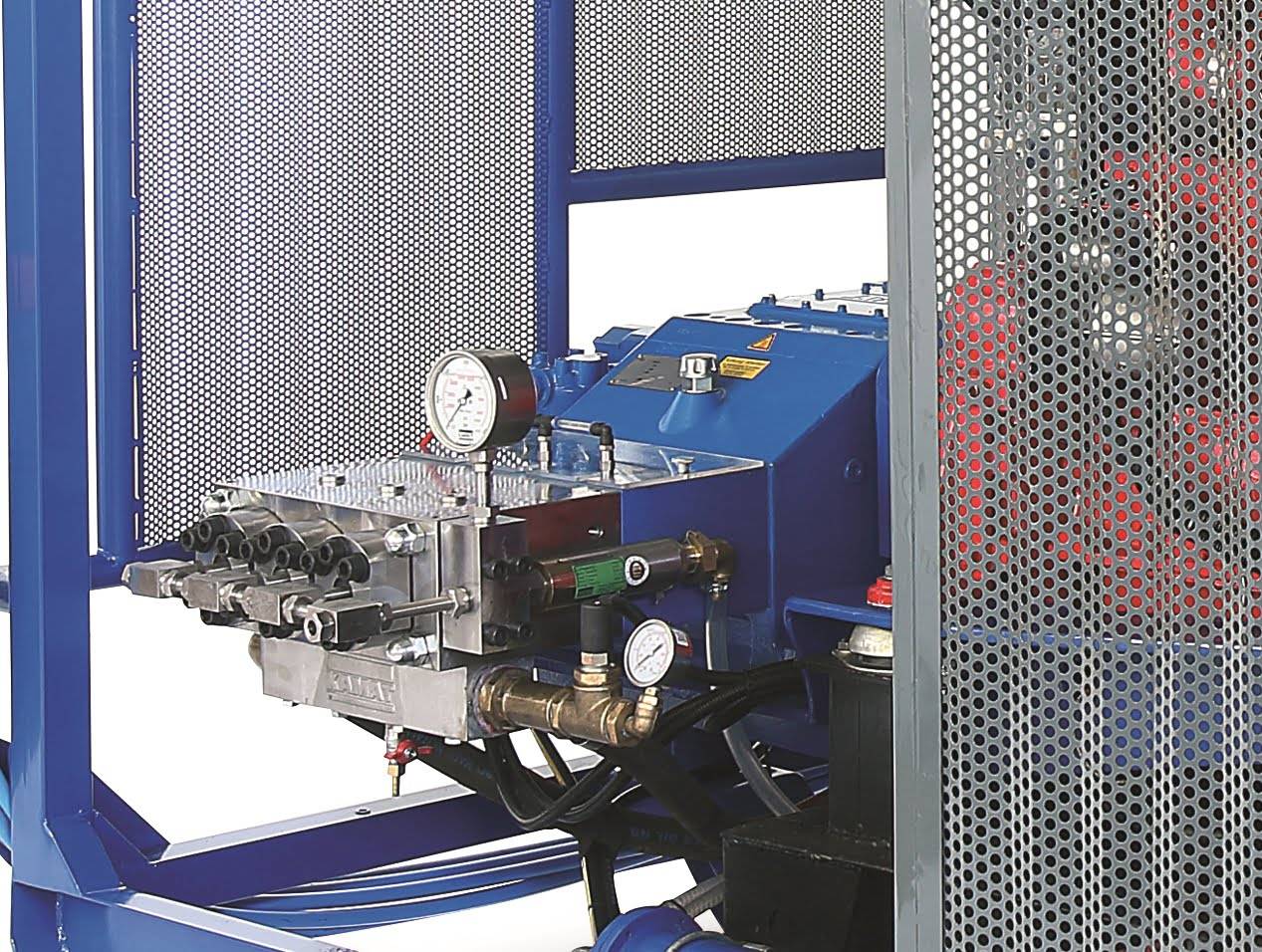 The JD90-2500 gets rid of fresh concrete deposits from mix trucks and pumps; eradicates loose paint, latex, emulsion and labels from containers and drums; and cleans weather dirt from surfaces of buildings.